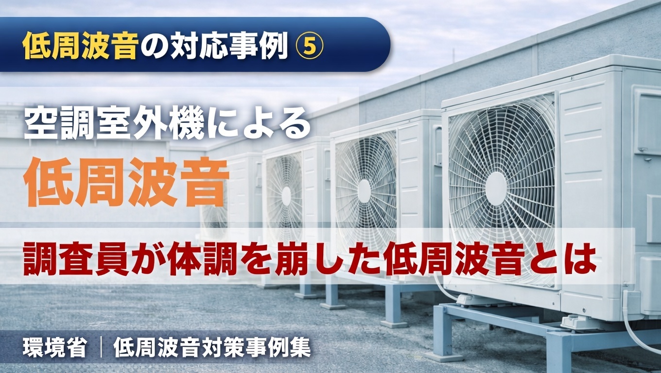 本記事は、環境省が公式に公開している「低周波音防止対策事例集(平成20年12月)」の内容をもとに、低周波音に関心のある方にとって参考になりそうな事例を抜粋し、要点を整理してご紹介しているものです。 記載している内容は、筆者個人の体験や主観的な意見ではなく、環境省が調査・整理した事実に基づいています。 第5回は、空調室外機が音源となる低周波音についての事例をご紹介します。本事例の特筆すべき点は、特別に大きな音圧レベルではない低周波音であっても、調査員自身が体調不良を訴える事態が生じたことを、環境省が公式資料 ...
