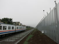 都市郊外では在来線沿線に住宅街が広がっている場所が多くみられますが、このような環境では暗騒音と鉄道騒音のレベル差が非常に大きくなる事から、鉄道騒音だけに着目した場合は遮音対策に十分な注意が必要になります。 ただし在来線によっては通過する本数が少ない場合も多く、時間帯によっては1時間に数本という所も少なくありません。 画像の環境での鉄道騒音測定結果です。 黒い太線が暗騒音のレベルで、ばらつきのある点線は20本の鉄道通過騒音最大値、青い太線が鉄道通過騒音最大値20本のエネルギ ...