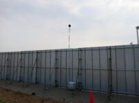 既に仮囲いが設置された建設予定地では、仮囲いの支柱を利用する事により、敷地内に立ち入る事無く機材を設置する事が可能です。 仮囲いによる遮蔽の影響を避ける為にも、敷地境界線上での測定が有効になる場合があります。