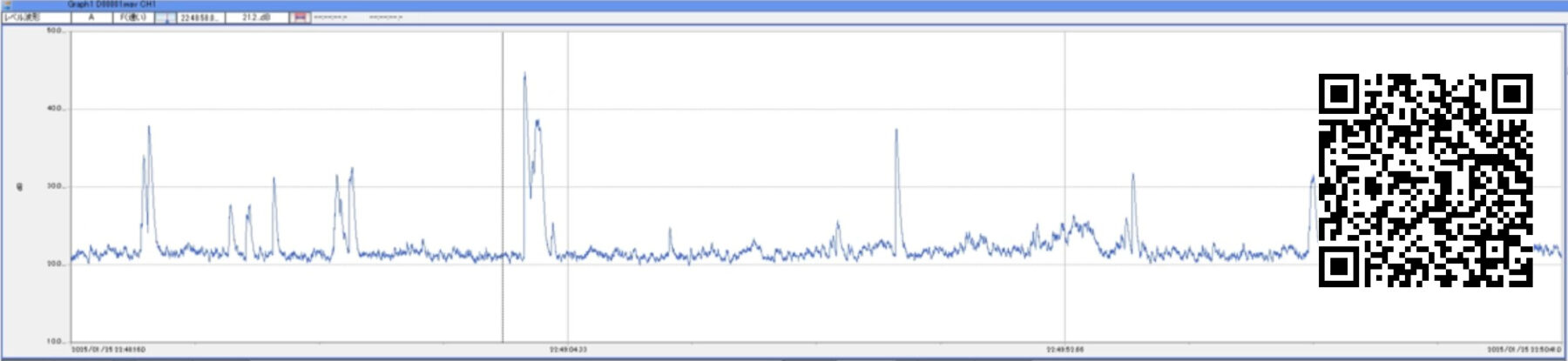 レベル波形の該当時刻にひもづく短い音声(例:5–10秒)を、紙面/PDF上のQRコードからスマートフォンで再生できます。