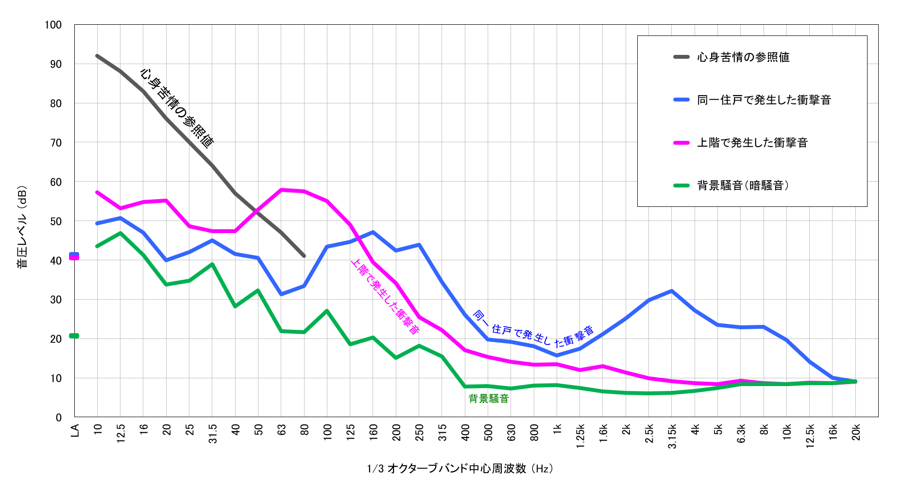 - 室内の衝撃音(ブルー) … 参照値を超えない