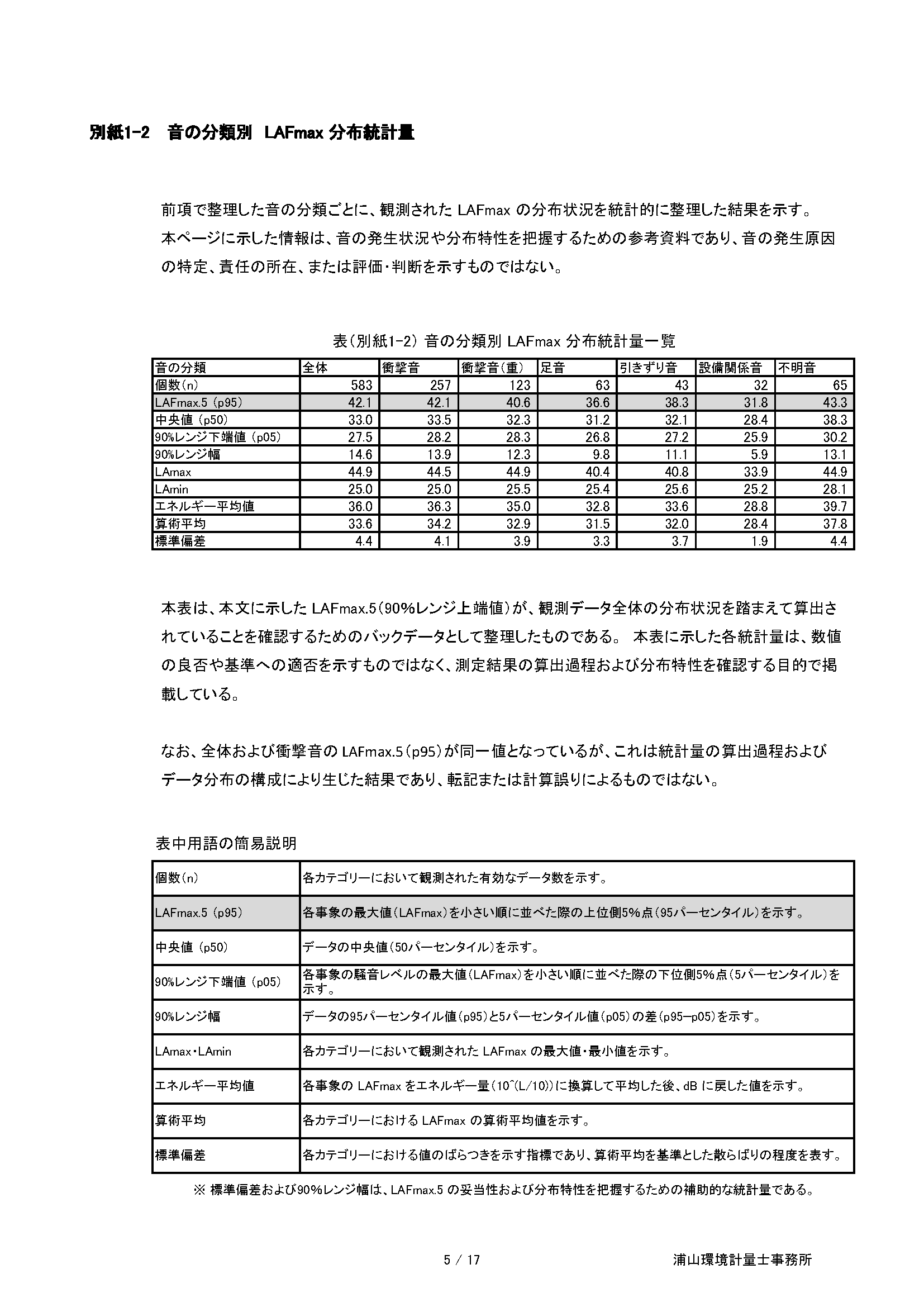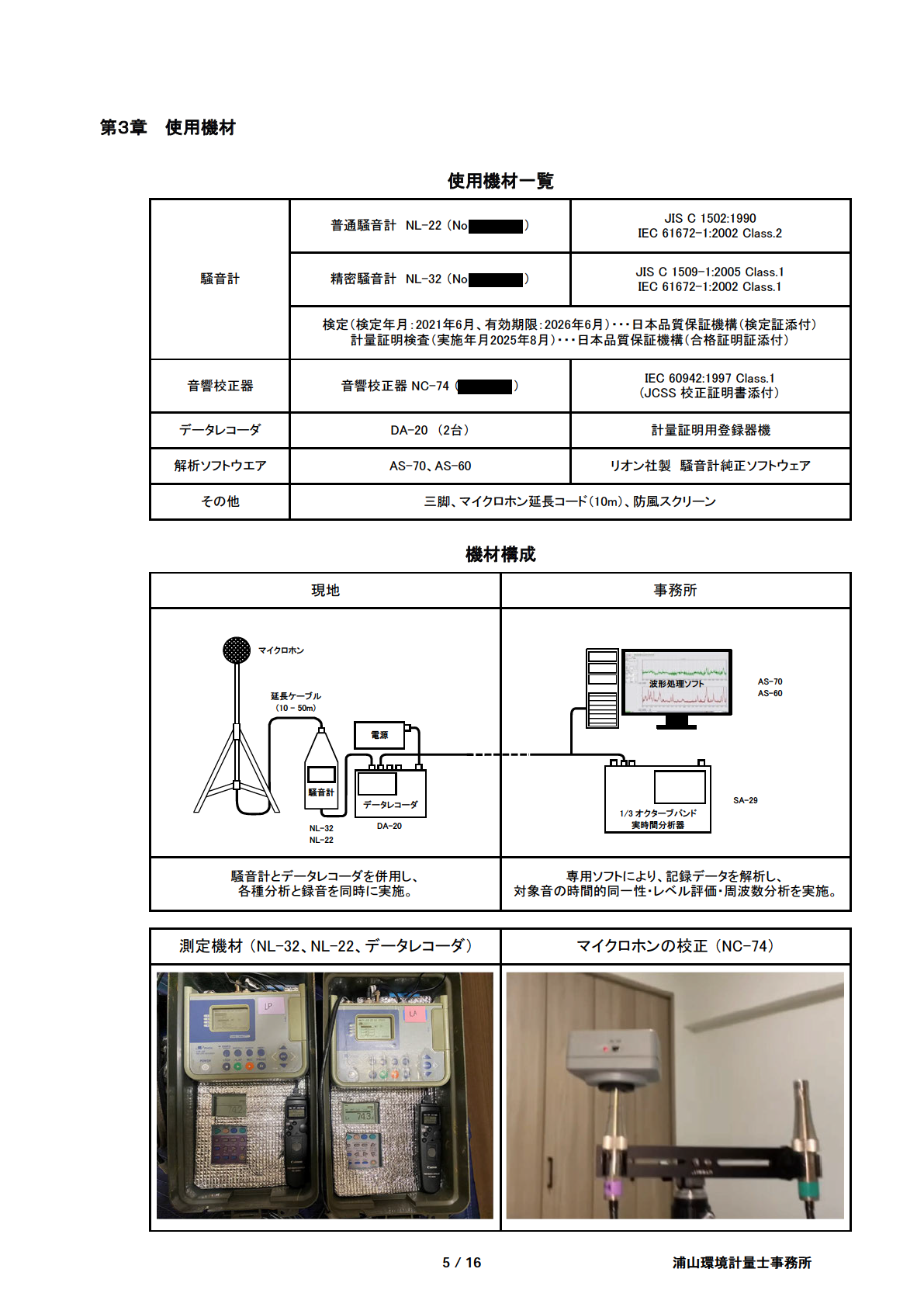 ※資料は一例です。測定内容や騒音状況等により、構成・掲載内容は変更となる場合があります。